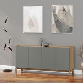 Características: Estrutura em Madeira Maciça de Pinus Pintura Acetinada Verniz PU e UV Frente de Portas e Gavetas em MDF 01 Gaveta com Corrediças Telescópicas 04 Portas Dobradiças com Amortecimento Prateleiras em Madeira Maciça Pés Flutuantes Peso Máximo Suportado pela Gaveta 05kg Distribuídos Peso Máximo Suportado pelas Prateleiras 10kg Distribuídos Isolamento de Peças com Manta de Polietileno Expandido (Isomanta)