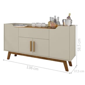 Com um design retrô, ele possui 1 gaveta, 4 portas e 2 prateleiras internas, ideal na organização de bebidas, taças, objetos de decoração e muito mais.