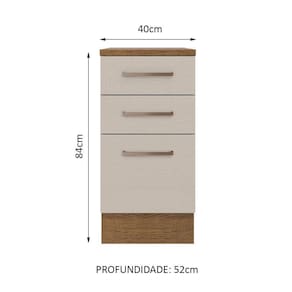 Este balcão de 40 cm da linha Agata da Madesa conta com três gavetas, sendo a última mais profunda.