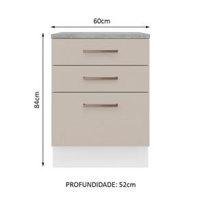 Este balcão de 60 cm da linha Agata da Madesa conta com três gavetas, sendo a última mais profunda. É perfeito para ampliar sua cozinha e organizar as louças e utensílios.
