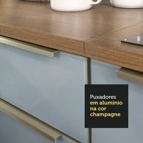 O vidro cinza aplicado nas portas é o grande destaque, trazendo sofisticação e mais beleza para sua cozinha.