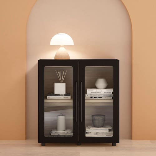 Adicione elegância e organização à sua casa. Espaço Charmoso e Funcional: Prateleira interna para organizar utensílios ou exibir decorações, oferecendo praticidade. Portas com vidro temperado 0,3cm e puxador de aluminio: Toque refinado que eleva o visual do móvel e do ambiente. Design que Encanta os Olhos: Combinação perfeita entre beleza estética e funcionalidade. Versatilidade de Uso: Ideal para salas de jantar, cozinhas ou ambientes diversos. Qualidade Duradoura: Materiais resistentes para garantir a durabilidade e estabilidade do móvel. Detalhes que Cativam: Acabamento sofisticado para transformar seu espaço com elegância. É a adição que sua casa precisa para harmonizar beleza e organização. Aproveite para renovar seu espaço com estilo e funcionalidade! Produto Montado: Sim Acabamento: Pintura UV Acabamento da Porta: Pintura UV Acabamento da Prateleira: Pintura UV Ambiente Principal: Sala de Estar codigo_ean: 7900288234056 Complexidade da Montagem: Média: pode ser montado por mais de uma pessoa e/ou necessite de maior conhecimento para montagem Cor: Preto / Riviera Cor do Produto: Preto / Riviera Escala de Brilho: Fosco Escala de Brilho da Porta: Fosco Escala de Brilho da Prateleira: Fosco Espessura do Vidro: 5 mm Itens Inclusos: 1 Balcão, Kit Ferragem e Manual de Montagem Linha ou Coleção: Mia Manual de Montagem e Instalação: https://product-hub-prd.madeiramadeira.com.br/930073402/documents/535ccf8e-9875-448d-a5de-be9af45f251f32103631151758111109845.pdf Marca: Yescasa Material da Porta: MDF/MDP Material da Prateleira: MDF/MDP Material dos Pés: Plástico Material Principal: MDF/MDP Necessita Montagem: Sim Peso: 25,3 kg Peso Máximo por Prateleira: 2 kg Possui Adega: Não Possui Espelho: Não Possui Gavetas: Não Possui Pés: 05 Possui Portas: Sim Possui Prateleiras: Sim Possui Rodízio: Não Possui Vidro: Sim Quantidade de Portas: 2 Portas Recomendações de Uso, Manutenção e Limpeza: Não expor o produto ao sol, altas temperaturas e umidade. Não arrastar objetos sobre a superficie do móvel (objetos decorativos) e manter em local sco e arejado. Para a limpeza, ultilizar um pamo seco e macio. Não é necesário o uso de materias abrasivos ou álcool. Sapatas Niveladoras: Não Sistema de Montagem: Cavilha Minifix e Parafusos Suporta Até (kg): 10 kg Tipo de Dobradiça/Corrediça da Porta: Metálica Tipo de Porta: Abrir Tipo de Puxador da Porta: Externo