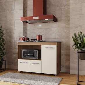 Balcão Ana Para Cooktop e Forno Micro-ondas 03 Portas Savana Off White Moblis