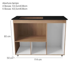 Abertura do tampo: 4 Bocas 53,5cm X 36cm / 5 Bocas 63,5cm X 36cm