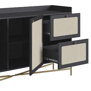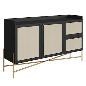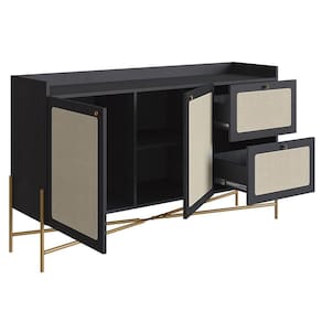O Balcão Aparador Buffet 2 Portas Pé Metal Arlo A10 Nero/Dourado, da Mpozenato, é uma peça que combina funcionalidade e estética moderna de maneira exemplar.