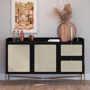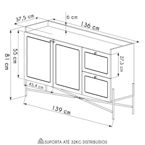 O Balcão Aparador Buffet 2 Portas Pé Metal Arlo A10 Nero/Dourado, da Mpozenato, é uma peça que combina funcionalidade e estética moderna de maneira exemplar.