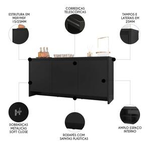 O Balcão Aparador Buffet 3 Portas Madrid C14 Preto, da Mpozenato, é a escolha ideal para elevar a decoração e funcionalidade da sua Sala de Estar.