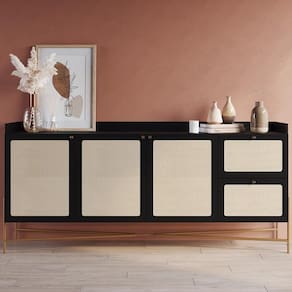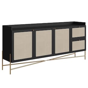 O Balcão Aparador Buffet 3 Portas Pé Metal Arlo A10 Nero/Dourado, da Mpozenato, é uma peça que combina funcionalidade e estética moderna de maneira exemplar.