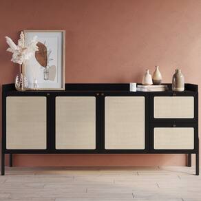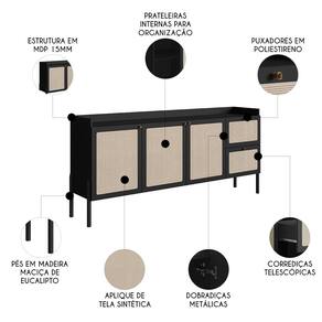O Balcão Aparador Buffet 3 Portas Pés Madeira Arlo A10 Nero/Preto, da Mpozenato, é uma peça que combina funcionalidade e estética moderna de maneira exemplar.