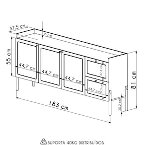 Esse Balcão Buffet é ideal para quem deseja adicionar um elemento de sofisticação à Sala de Estar. Construído com uma estrutura robusta em MDP de 15mm e um acabamento BP de alta qualidade, ele também possui 3 portas convencionais equipadas com dobradiças metálicas resistentes à corrosão. As gavetas, com corrediças telescópicas, proporcionam um espaço interno generoso e são equipadas com puxadores de poliestireno que facilitam o manuseio. Além disso, o Aparador se destaca pelos detalhes em tela sintética de PVC com poliéster, que são aplicados nas portas e gavetas, conferindo um toque retrô ao Aparador Bar. Os pés em madeira maciça de eucalipto, com sapatas emborrachadas nas extremidades, garantem estabilidade e evitam o atrito do móvel com o piso. Este balcão não é apenas funcional, mas também é uma peça de destaque que pode realçar a decoração de qualquer ambiente.
