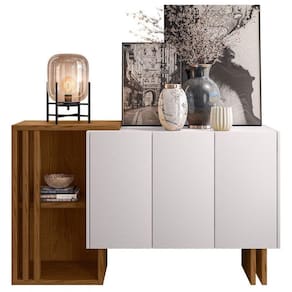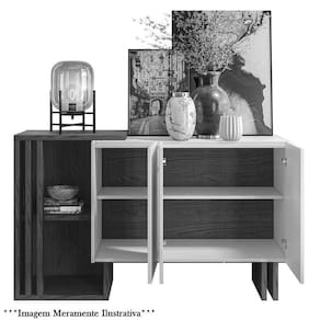 O Aparador Bells é a combinação do moderno e retrô, escolha ideal para quem busca um complemento funcional e estiloso! Ele possui prateleira interna e 3 portas convencionais para melhor organizar seus pertences, além disso também conta com 2 nichos laterais para itens decorativos. Esse móvel é perfeito no quesito durabilidade e resistência, pois é confeccionado em MDF 15 e 25 mm e acabamento em pintura UV!