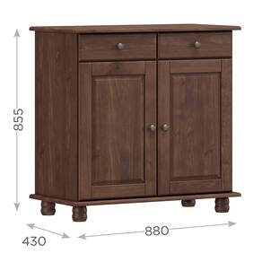 O Balcão Aparador Rubi da Finestra Móveis combina elegância e funcionalidade, sendo fabricado com estrutura em madeira maciça de pinus de reflorestamento e acabamento em pintura acetinada com verniz PU e UV. Conta com duas portas equipadas com dobradiças com amortecimento e prateleiras internas em madeira maciça que suportam até 10kg distribuídos. Possui ainda duas gavetas com corrediças telescópicas e capacidade para até 5kg cada, oferecendo amplo espaço para organização. Os puxadores metálicos em ouro envelhecido e os pés torneados em madeira maciça acrescentam um charme clássico ao design, tornando a peça ideal para salas de jantar, estar ou halls de entrada.