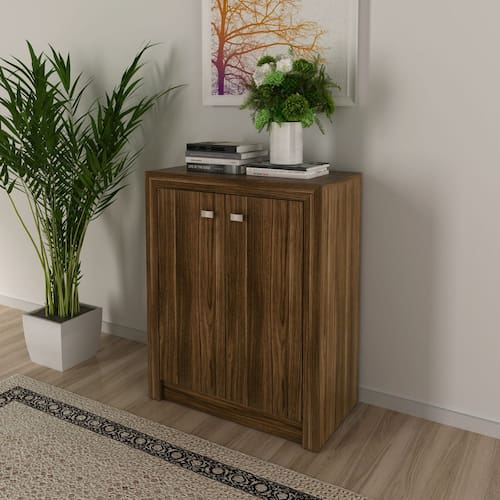 - Fabricado em MDP com acabamento BP e costas na cor Nogal, o que garante um visual uniforme e elegante.