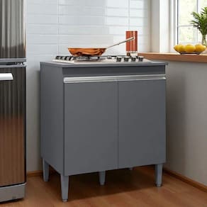 Balcão Armário De Cozinha Multiuso Para Cooktop Com Tampo 4 Ou 5 Bocas Andréia Cinza Fosco- Mabe Magazine