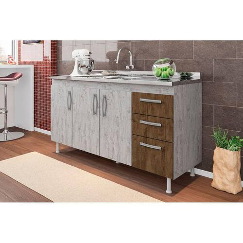 Balcão Armário de Cozinha Nathan 160cm Rústico/Chocolate S/ Tampo - Cinza