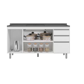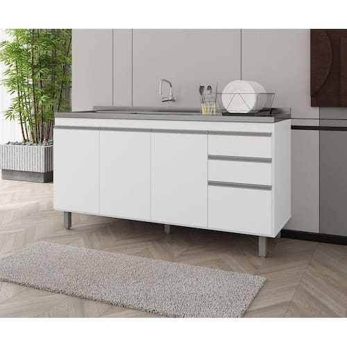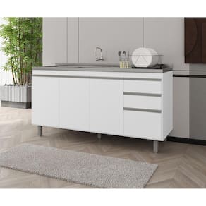 Características: Material da Estrutura: MDP Acabamento: Pintura UV Escala de Brilho: Fosco Possui 3 portas Possui 3 gavetas Dobradiças em aço Puxadores embutidos Pés em PVC Corrediças metálicas Design moderno Acompanha Tampo: Não