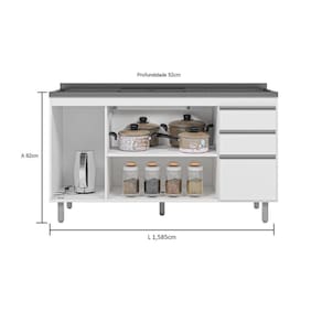 Medidas do Produto Montado: A: 82 cm L: 1.585 cm P: 52 cm Peso: 45 kg