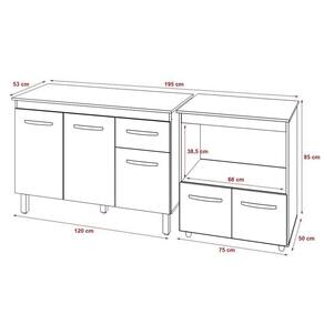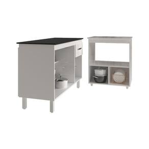 Balcão Armário Gabinete Aline 118 Cm Branco Com Tampo Preto E Balcão Amanda Para Forno E Microondas Branco Este kit une funcionalidade e design para transformar sua cozinha! Conta com o balcão Aline de 120 cm com tampo, perfeito para organizar utensílios e preparar refeições, além do balcão Amanda para Forno e Micro-ondas, garantindo uma instalação segura e harmoniosa. Com acabamento refinado, materiais de alta qualidade e um visual moderno, esse conjunto é a escolha ideal para quem busca praticidade sem abrir mão do estilo. Características do Balcão Aline:
