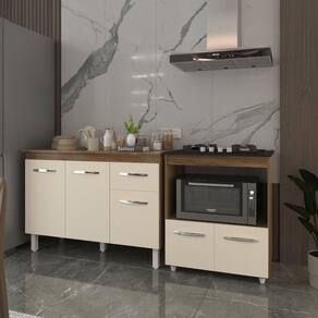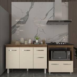Balcão Armário Gabinete Aline 118 Cm Savana Off White Com Tampo Savana E Balcão Evelyn Cooktop 4 Bocas Savana Off White Este kit une funcionalidade e design para transformar sua cozinha! Conta com o balcão Aline de 120 cm com tampo, perfeito para organizar utensílios e preparar refeições, além do balcão Evelyn para cooktop de 4 bocas, garantindo uma instalação segura e harmoniosa. Com acabamento refinado, materiais de alta qualidade e um visual moderno, esse conjunto é a escolha ideal para quem busca praticidade sem abrir mão do estilo. Características do Balcão Aline: