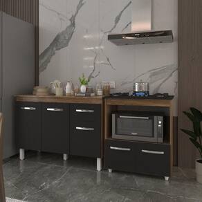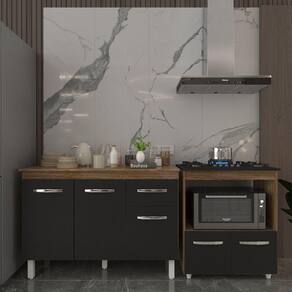 Balcão Armário Gabinete Aline 118 Cm Savana Preto Com Tampo Savana E Balcão Evelyn Para Cooktop 5 Bocas Savana Preto Este kit une funcionalidade e design para transformar sua cozinha! Conta com o balcão Aline de 120 cm com tampo, perfeito para organizar utensílios e preparar refeições, além do balcão Evelyn para cooktop de 5 bocas, garantindo uma instalação segura e harmoniosa. Com acabamento refinado, materiais de alta qualidade e um visual moderno, esse conjunto é a escolha ideal para quem busca praticidade sem abrir mão do estilo. Características do Balcão Aline: