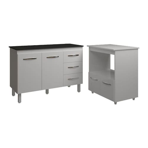 Balcão Armário Gabinete Bruna 118 Cm Branco Com Tampo Preto E Balcão Amanda Para Forno E Microondas Branco Transforme sua cozinha com este kit prático e elegante! Composto pelo balcão Bruna de 120 cm com tampo, ideal para armazenamento e apoio no preparo de refeições, e pelo balcão Amanda para Forno e Micro-ondas, que proporciona uma instalação segura e organizada. Seu design moderno, materiais resistentes e acabamento sofisticado garantem funcionalidade e beleza para um ambiente mais aconchegante e eficiente. Características do Balcão de Pia Bruna 118 cm: