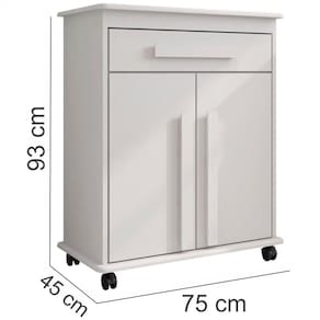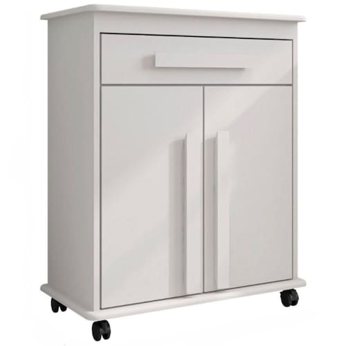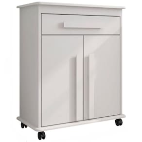 Estrutura: MDPAcabamento: Pintura U.V, com acabamento foscoPorta: Sim, 02 portas de abir/fechar, com dobradiças metálicasPrateleira: Sim, 01 prateleira internaPuxador: Sim, em MDFGaveta: Sim, 01 gaveta com corrediças telescópicaPés: Sim, 04 rodízios para melhor mobilidade do móvel no dia a diaDimensões do produto montado: