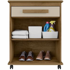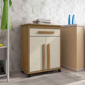 Estrutura: MDPAcabamento: Pintura U.V, com acabamento foscoPorta: Sim, 02 portas de abir/fechar, com dobradiças metálicasPrateleira: Sim, 01 prateleira internaPuxador: Sim, em MDFGaveta: Sim, 01 gaveta com corrediças telescópicaPés: Sim, 04 rodízios para melhor mobilidade do móvel no dia a diaDimensões do produto montado: