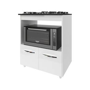 Balcão Armário para Fogão Cooktop 5 Bocas e Forno Elétrico Cozinha Evelyn Mobília Decor Branco