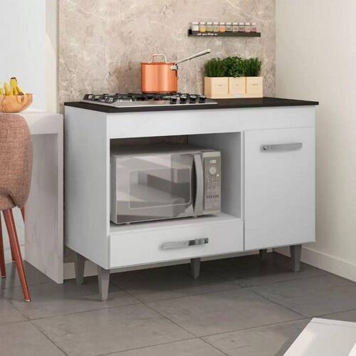 O Balcão de Cozinha Com Tampo Carla é perfeito para você que precisa otimizar seu espaço e procura um móvel que foi desenvolvido para agregar beleza e praticidade para sua copa ou cozinha. Com excelente espaço interno para armazenar os utensílios necessários, ele conta com 01 porta, 01 gaveta, pés de pvc, puxadores em PVC ergonômicos cromados, dobradiças e corrediças metálicas e com um excelente acabamento com pintura UV Fosca para maior durabilidade do móvel.
