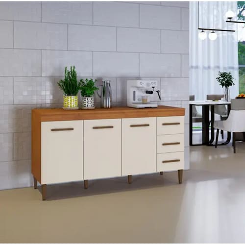 Balcão Atenas 3 Portas e 3 Gavetas - Kaiki MóveisO Balcão Atenas é aquele tipo de peça que faz toda a diferença na cozinha! Com suas 3 portas e 3 gavetas, é como se ele fosse o "super-herói" do armazenamento. Com uma largura de 160cm, é espaço que não acaba mais! Você pode guardar panelas, potes, e até aqueles utensílios que sempre somem quando você mais precisa deles. E sabe o que é melhor? Suas portas e gavetas são tão fáceis de abrir que você nem vai perder tempo na hora de pegar o que precisa. Ah, e o visual dele? Moderno e chique, vai dar aquele toque de estilo na sua cozinha, com certeza!