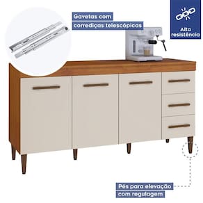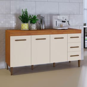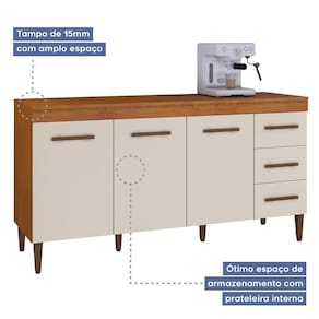 Balcão Atenas 3 Portas E 3 Gavetas Kaiki Móveis Nature/off White