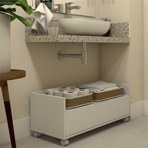 O Balcão Banheiro com 1 gaveta e rodízios Atacama Multimóveis é uma solução prática para você aproveitar aquele espaço rstrito e complementar seu ambiente. Produzido em MDF/MDP com pintura UV acetinada, que garante maior durabilidade e facilidade na limpeza, possui 1 gaveta com amplo espaço interno e corrediças metálicas que proporcionam mais leveza no manuseio. Os rodízios facilitam a movimentação do móvel na hora da limpeza. Seu design clean permite que ele seja utilizado em diferentes ambientes, adaptando-se conforme sua necessidade.