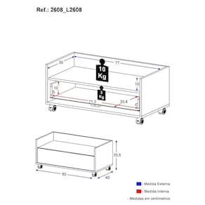 Dimensões do produto montado: Altura: 35,5cm | Largura: 80cm | Profundidade: 40cm *Você pode consultar as medidas internas na imagem técnica do produto.