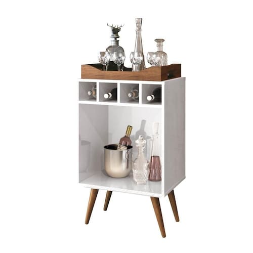 O Balcão Adega Bar Pub conta com design moderno e sofisticado para complementar sua decoração. Com pés e bandeja removível em madeira maciça adesivo interno na bandeja e adega, ele proporciona um espaço ideal para acomodar até 4 garrafas, unindo beleza e funcionalidade de forma impecá estrutura em MDP com acabamento de alta qualidade garante maior durabilidade e resistência, tornando este balcão uma peça resistente e de longa vida útil. Ideal para valorizar o seu ambiente, esse móvel traz um toque de elegância ao seu espaço.