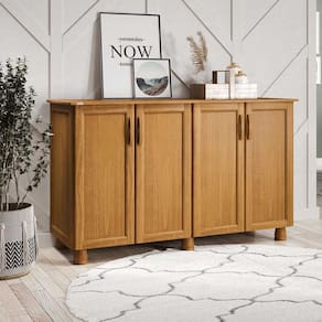 Balcão Brasil 4 Portas Lisa em Madeira Pinus Carvalho Acetinado - Tozzeto