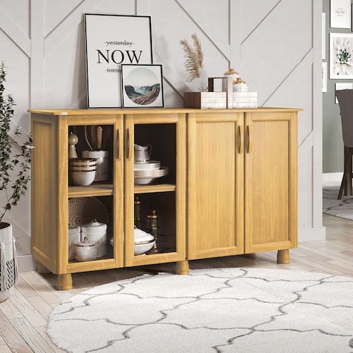 O Balcão Brasil com 4 portas combina charme rústico e funcionalidade, ideal para organizar seus utensílios com praticidade e estilo. Fabricado em madeira de Pinus com acabamento em Freijó Acetinado, oferece 2 portas com vidro transparente e 2 lisas, além de prateleiras internas para uma melhor disposição dos itens.