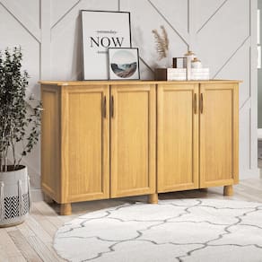 Balcão Brasil 4 Portas Lisa em Madeira Pinus Freijó Acetinado - Tozzeto