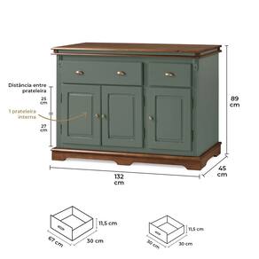 Balcão Buffet 3 Portas 2 Gavetas Manchester 2001 Linz Móveis - Verde Musgo/Imbuia Glazer