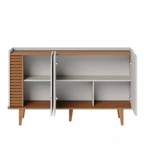 Características: Estrutura em MDP e MDF 3 Portas Detalhe ripado Bases e laterais com cantos curvos Pés em madeira maciça