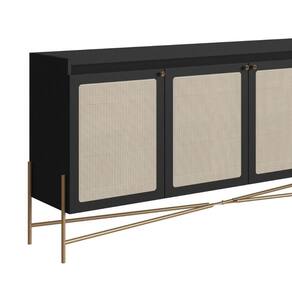 Balcão Buffet 3 Portas Oslo Artesano 183 Cm (largura) Mdp Nero Palha Sintética Bege Pé Metal Dourado