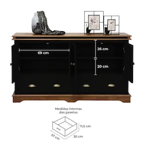 O tampo em madeira maciça apresenta um acabamento duplo, conferindo não apenas durabilidade, mas também um charme adicional ao produto. Perfeito para a sala de jantar, cozinha ou espaço gourmet, este Balcão Buffet de Madeira é a escolha ideal para quem busca qualidade, elegância e praticidade em um único móvel.