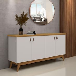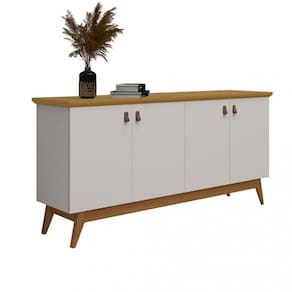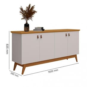 Características: 4 Portas 2 Prateleira Pés de madeira Puxador de couro Dobradiça metálica Estrutura em MDP Tampo MDF 25mm