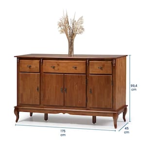 Está em busca de um móvel elegante e funcional para sua casa? O Balcão Buffet para Sala de Jantar 60635 Linz Móveis certamente deixará sua casa ainda mais bonita e organizada, pois ele combina praticidade e estilo para possibilitar o melhor aproveitamento de espaço possível. Conta com quatro portas com interiores espaçosos, três prateleiras internas para divisão dos utensílios armazenados, possui também três gavetas para guardar objetos menores, como talheres, em segurança. Além disso, o balcão de madeira exibe seus pés no estilo Luís XV que proporcionam um toque de nobreza e requinte na decoração da casa, trabalhando assim os dois aspectos necessários para um móvel, amplo espaço de armazenamento e também uma bela decoração harmoniosa ao local. Produzida em Madeira Maciça com acabamento em verniz, materiais de alta resistência e qualidade, possibilitam que você desfrute dessa mobília por muito tempo.