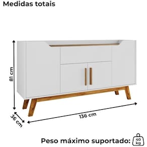 Cor: Multicolorido | Tonalidade: Multicolorido | Altura: 81 cm | Largura: 136 cm | Produto: Buffet | Peso produto: 32 kg Cor: Branco Cinamomo