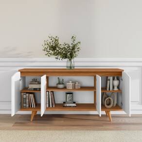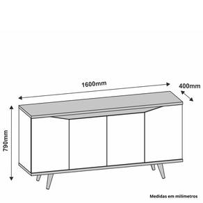 Características: Estrutura em MDP e MDF 4 Portas Dobradiças metálicas Sistema Soft Close Pés em madeira maciça Acabamento Print Wood
