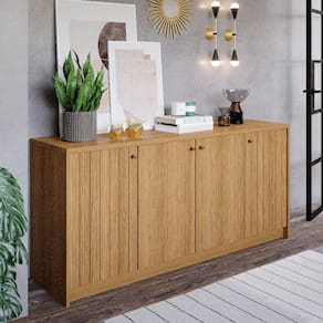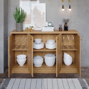 O Balcão Buffet Lia é o que você procura para completar sua sala! Com designer inovador ele irá agregar muito mais charme e requinte ao seu ambiente. Possui quatro portas com dobradiças metálicas. Amplo tampo para acomodar bebidas objetos de decoração taças etc. Estrutura elaborado em MDF garantindo com isso ainda mais qualidade e resistência ao produto.
