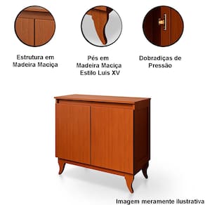Madeira maciçaO Balcão Buffet 2 Portas 100% Madeira Maciça Reymon é a escolha perfeita para quem busca um móvel sofisticado, resistente e atemporal. Produzido inteiramente em madeira maciça, ele garante durabilidade e robustez incomparáveis, sendo um investimento para muitos anos de uso. Seu design elegante, com linhas clássicas e acabamento refinado, valoriza qualquer ambiente, desde a sala de jantar até a área gourmet, unindo charme e