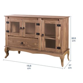 Madeira MaciçaDestaque seu ambiente com esse Balcão para Sala de Jantar, um móvel que combina sofisticação e praticidade para transformar sua decoração. Produzido 100% em madeira maciça, ele oferece durabilidade excepcional e um acabamento em cera que realça sua beleza natural. Equipado com 3 portas de vidro, 1 gaveta e 1 prateleira, esse Balcão Buffet oferece amplo espaço para guardar e organizar seus itens com estilo. Os pés Luiz XV trazem um toque clássico, enquanto as dobradiças em metal no estilo mexicano garantem robustez e autenticidade ao design. Ideal para salas, cozinhas ou áreas gourmet, este Balcão Rústico é a união perfeita entre funcionalidade e beleza.
