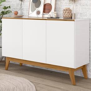 Balcao Buffet Ares 3 Portas 122 Cm Branco Nature Tebar Branco Nature