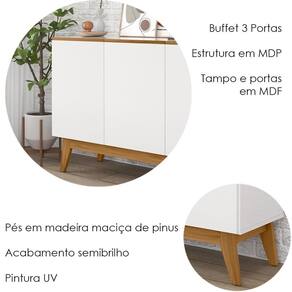 O Balcão Buffet 3 Portas é a combinação perfeita entre funcionalidade e design moderno para a sua casa. Produzido em MDP e MDF de 15mm, conta com pés em madeira maciça de pinus, dobradiças metálicas e prateleiras internas que facilitam a organização. Seu acabamento em pintura UV semibrilho garante durabilidade e um visual elegante. Este móvel chegará em sua casa separado em 01 volume.